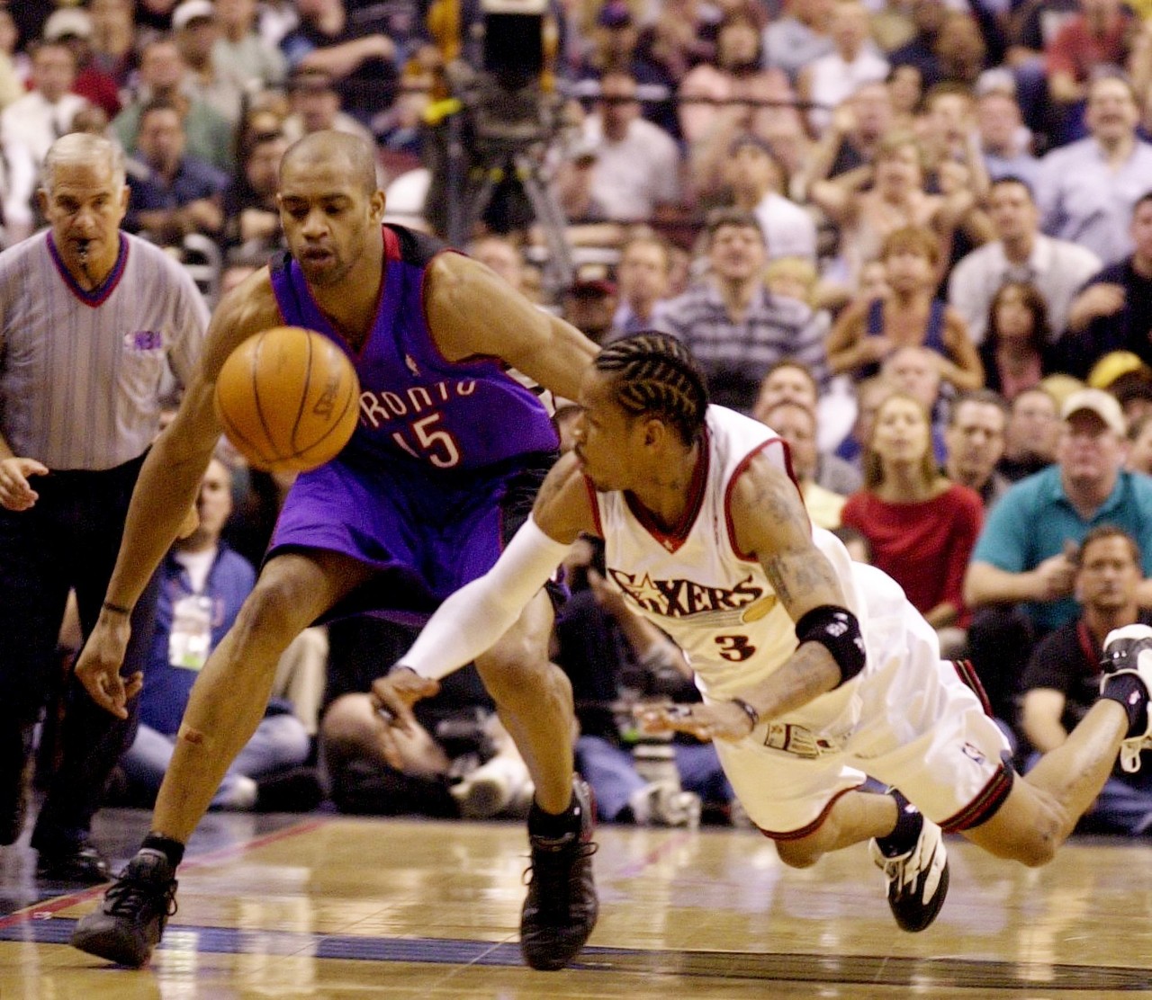 2001年東部半決賽,巔峰卡特VS巔峰艾弗森:艾弗森G2狂砍54分,卡特G3還以50分,艾弗森G5再砍52分,卡特G6獨得39分5籃板5助攻4搶斷1蓋帽——前六場,3-3平,搶七一戰(zhàn)定生死。