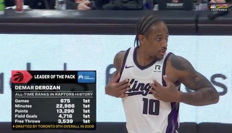 此役,重回北境的德羅贊受到了多倫多球迷的熱烈歡迎。轉(zhuǎn)播方曬出一組數(shù)據(jù),德羅贊多項(xiàng)數(shù)據(jù)位列猛龍隊(duì)史第一: