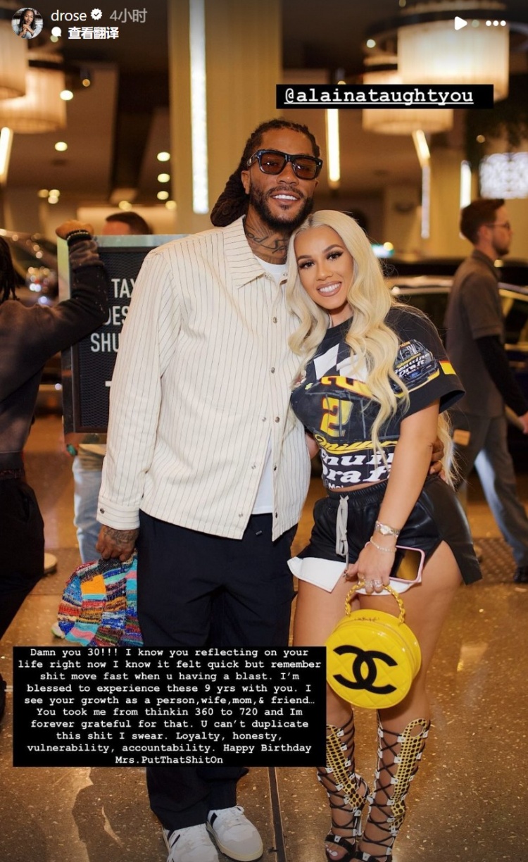 11月16日訊 今天是前NBA球員德里克-羅斯妻子的30歲生日,羅斯曬照為她慶生。