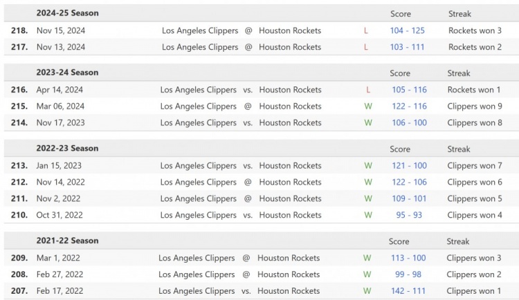 至此,快船遭遇了對陣火箭的三連敗。而在此之前,他們對火箭曾豪取9連勝。
