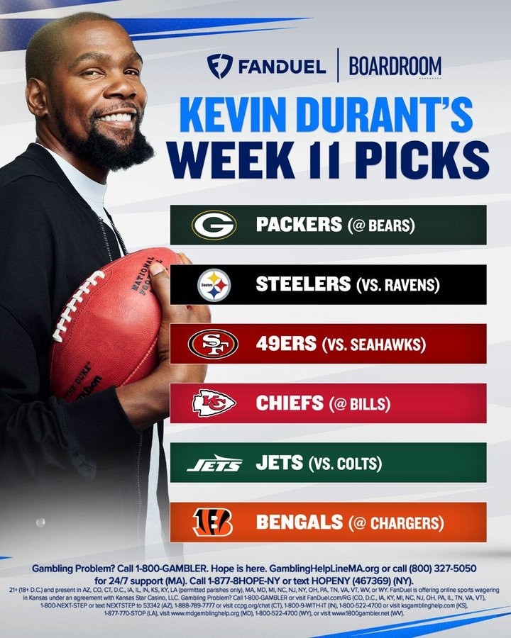 杜蘭特曬出自己的橄欖球范特西選擇。網(wǎng)友評論:“那個告訴人們停止賭博,然后為博彩代言的人