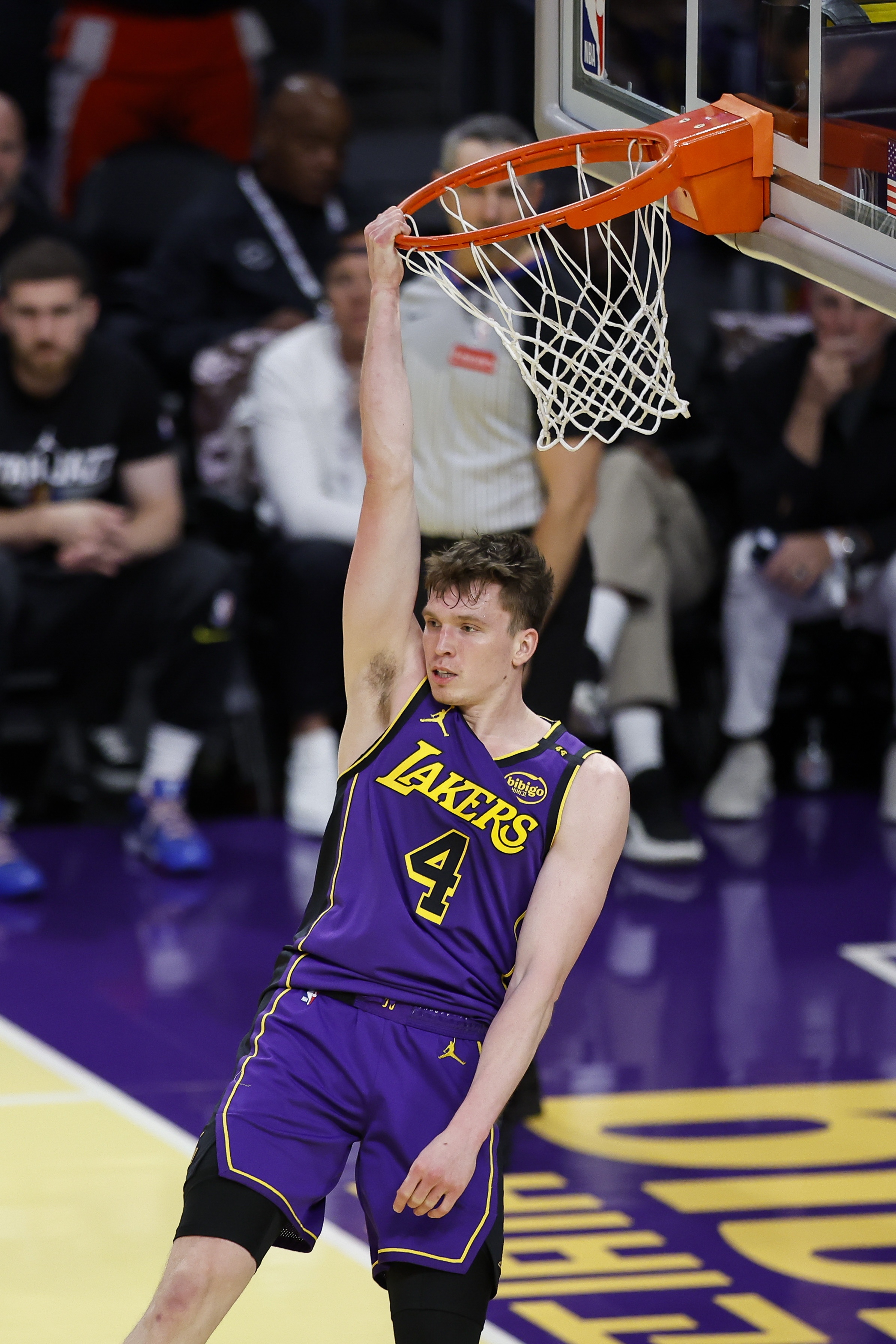 此役,湖人17號(hào)秀道爾頓-克內(nèi)克特大放異彩,他登場(chǎng)38分25秒16投12中,三分12中9、罰球5中4,砍下37分5籃板1搶斷進(jìn)賬,得分創(chuàng)生涯新高。第三節(jié),克內(nèi)克特在5分鐘的時(shí)間里狂轟21分。