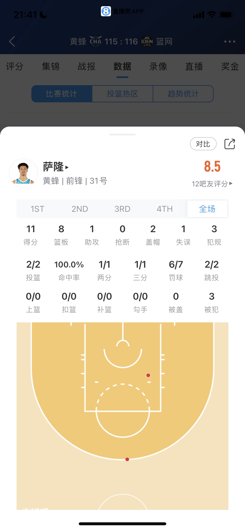 黃蜂6號秀 提賈尼-薩隆 出戰(zhàn)14.5分鐘