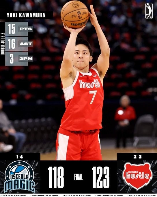 灰熊后衛(wèi)河村勇輝本場比賽發(fā)揮亮眼,他全場命中3記三分拿到15分,并送出驚人的16次助攻幫助球隊(duì)取勝。