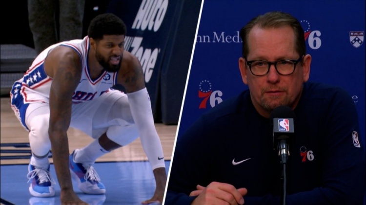 本場喬治遭遇左膝過度伸展提前退賽,談到此事,納斯說表示喬治明天將接受進一步檢查,他認為這與喬治在季前賽所遭遇的傷勢類似,是骨挫傷,而不是結(jié)構(gòu)性損傷。