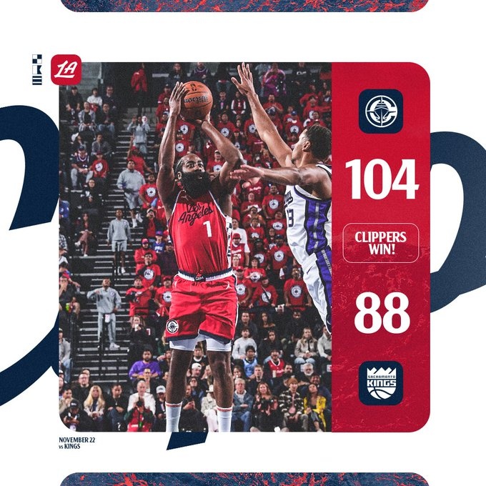 11月23日訊 NBA西部NBA杯A組,快船104-88擊敗國(guó)王。
