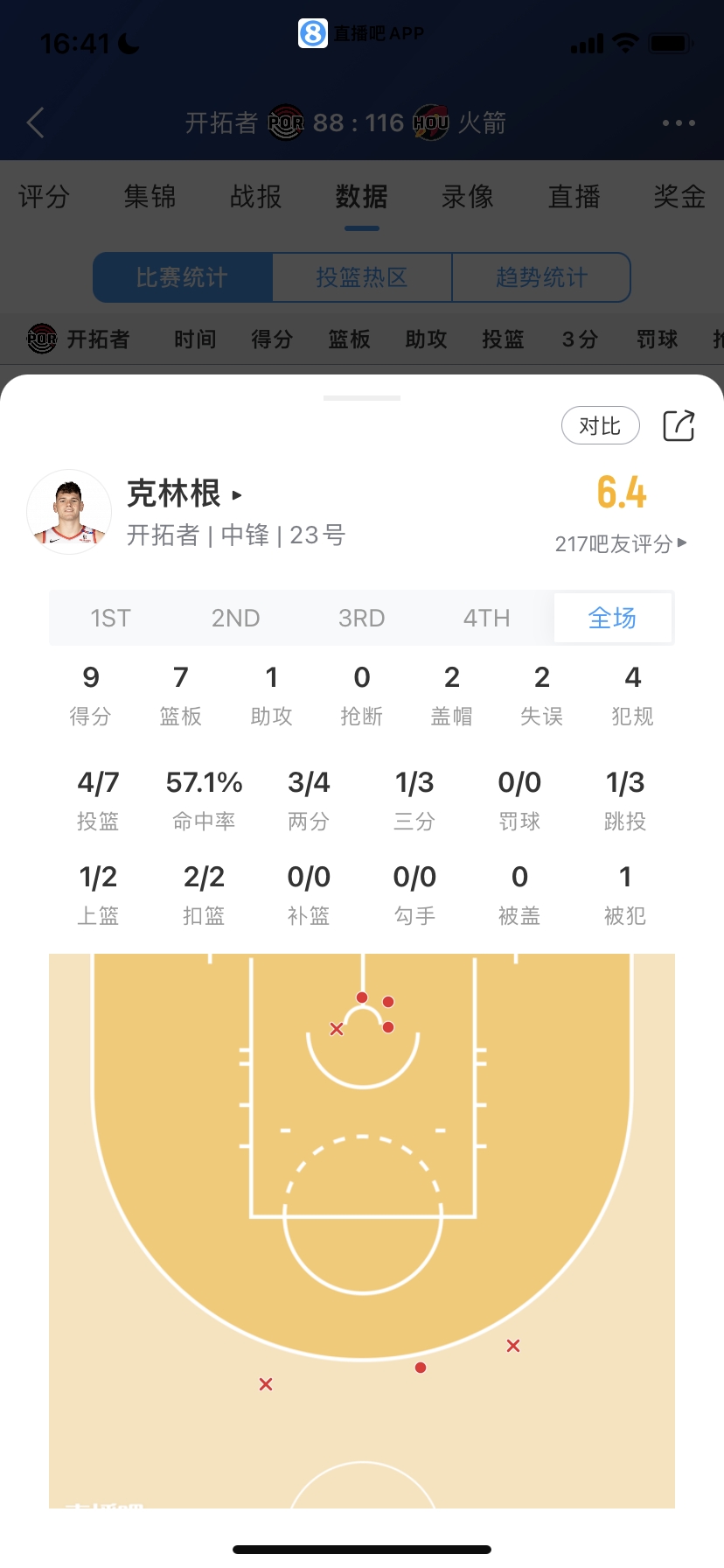 開拓者7號秀 多諾萬-克林根 出場15.1分鐘