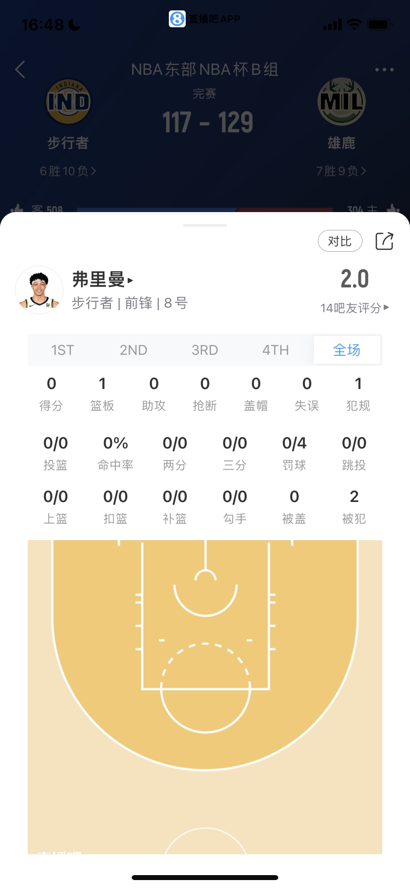 步行者50號秀 恩里克-弗里曼 上陣6分鐘