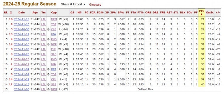 據(jù)統(tǒng)計(jì),14分是濃眉的賽季新低,此前最低是21分: