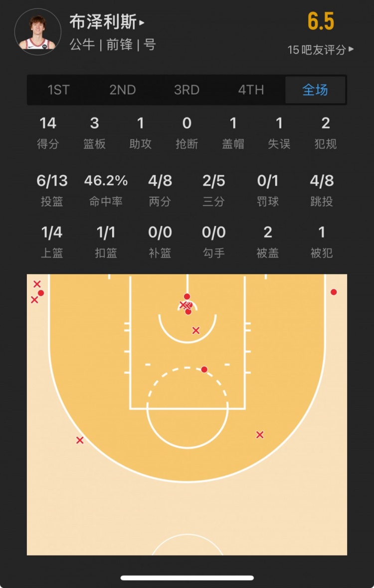 公牛11號(hào)秀 馬塔斯-布澤利斯 登場(chǎng)29.4分鐘