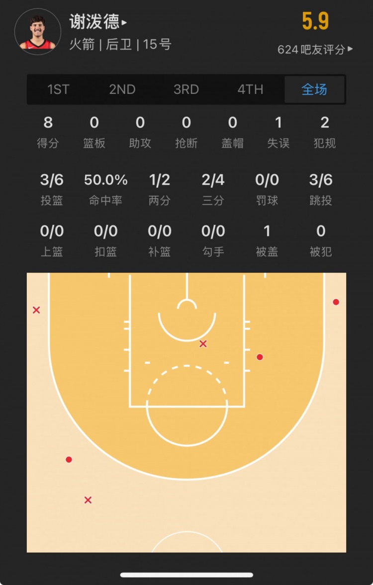 火箭探花秀 里德-謝潑德 登場(chǎng)11.4分鐘