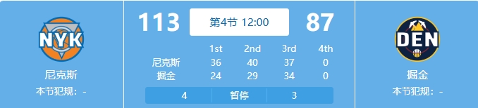 尼克斯每節(jié)得分都是35+!三節(jié)轟下113分!