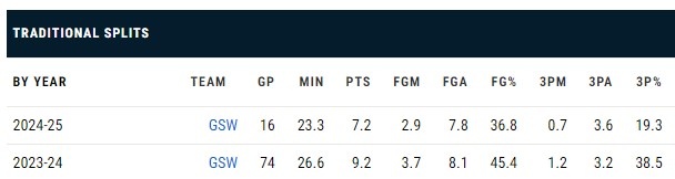 到了本賽季,波杰姆斯基三分場均出手3.6次,比上賽季的3.2次是有所增加,但三分命中率從上賽季的38.5%至今降到了19.3%,攔腰對折!