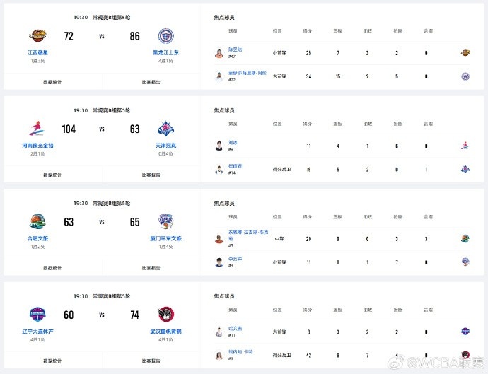 河南豫光金鉛104-63 大勝天津冠嵐。河南隊鄭亞萍拿下22分4籃板5搶斷,天津女籃崔雨萱拿到19分5籃板2助攻。