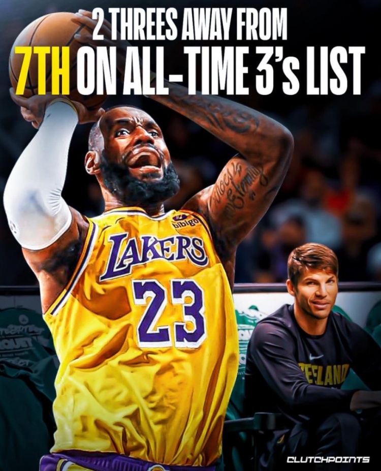 目前,詹姆斯常規(guī)賽生涯已經(jīng)投中了2448記三分,暫列歷史第八,差2記追平科沃爾。