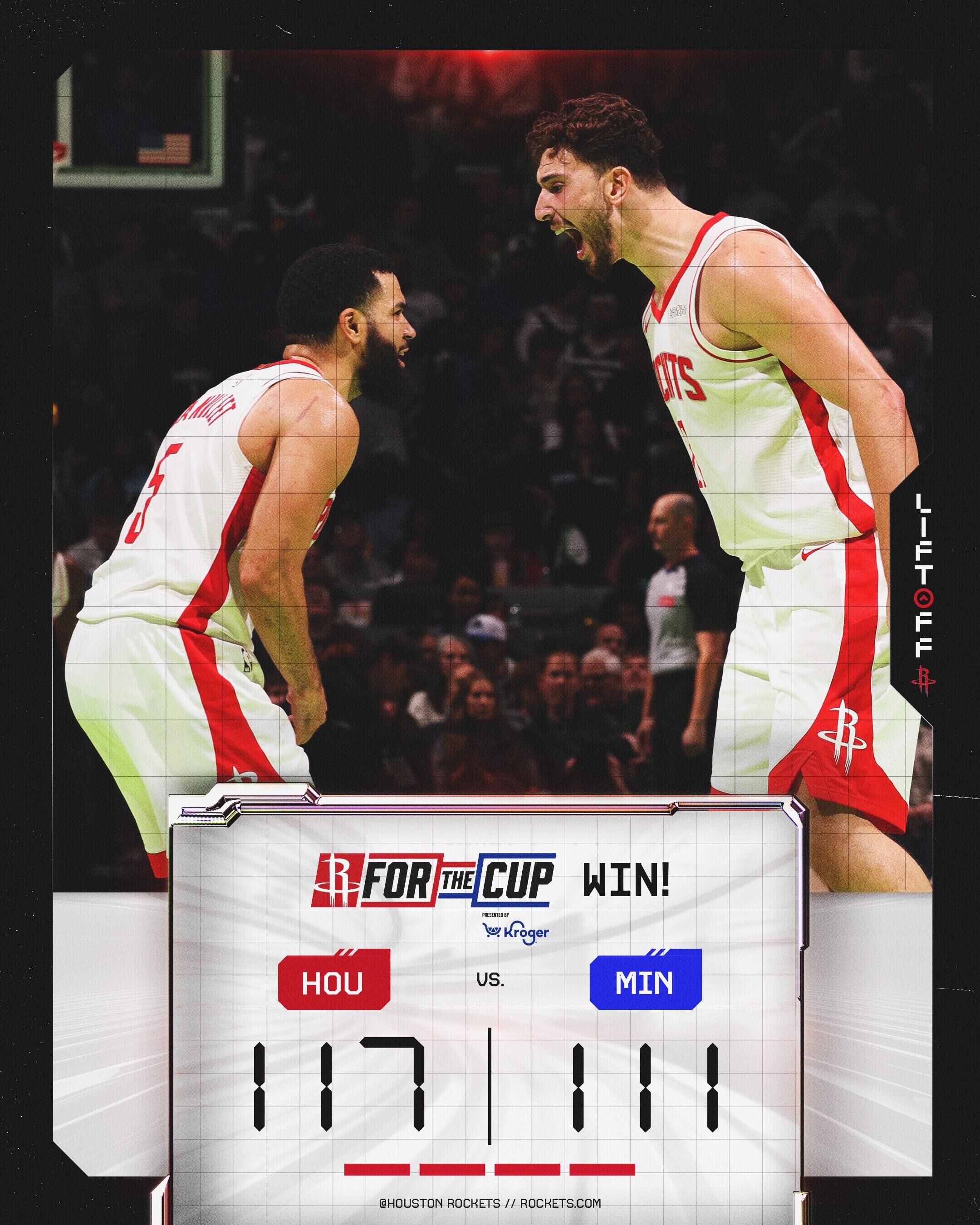 贏下本場(chǎng)比賽之后,火箭NBA杯小組賽3勝0負(fù),已經(jīng)確定以小組第一身份晉級(jí)NBA杯8強(qiáng)!