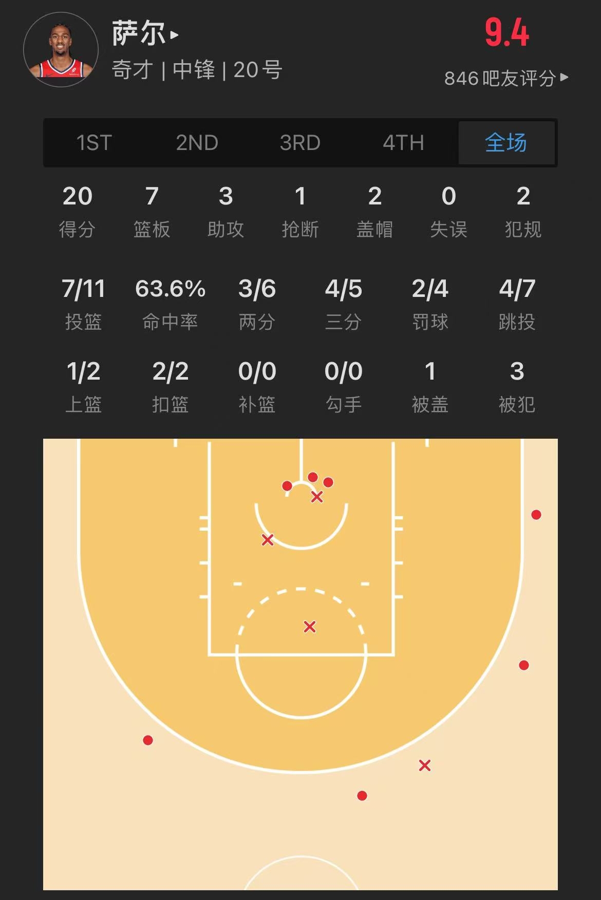 奇才榜眼秀 亞歷克斯-薩爾 登場(chǎng)31.1分鐘