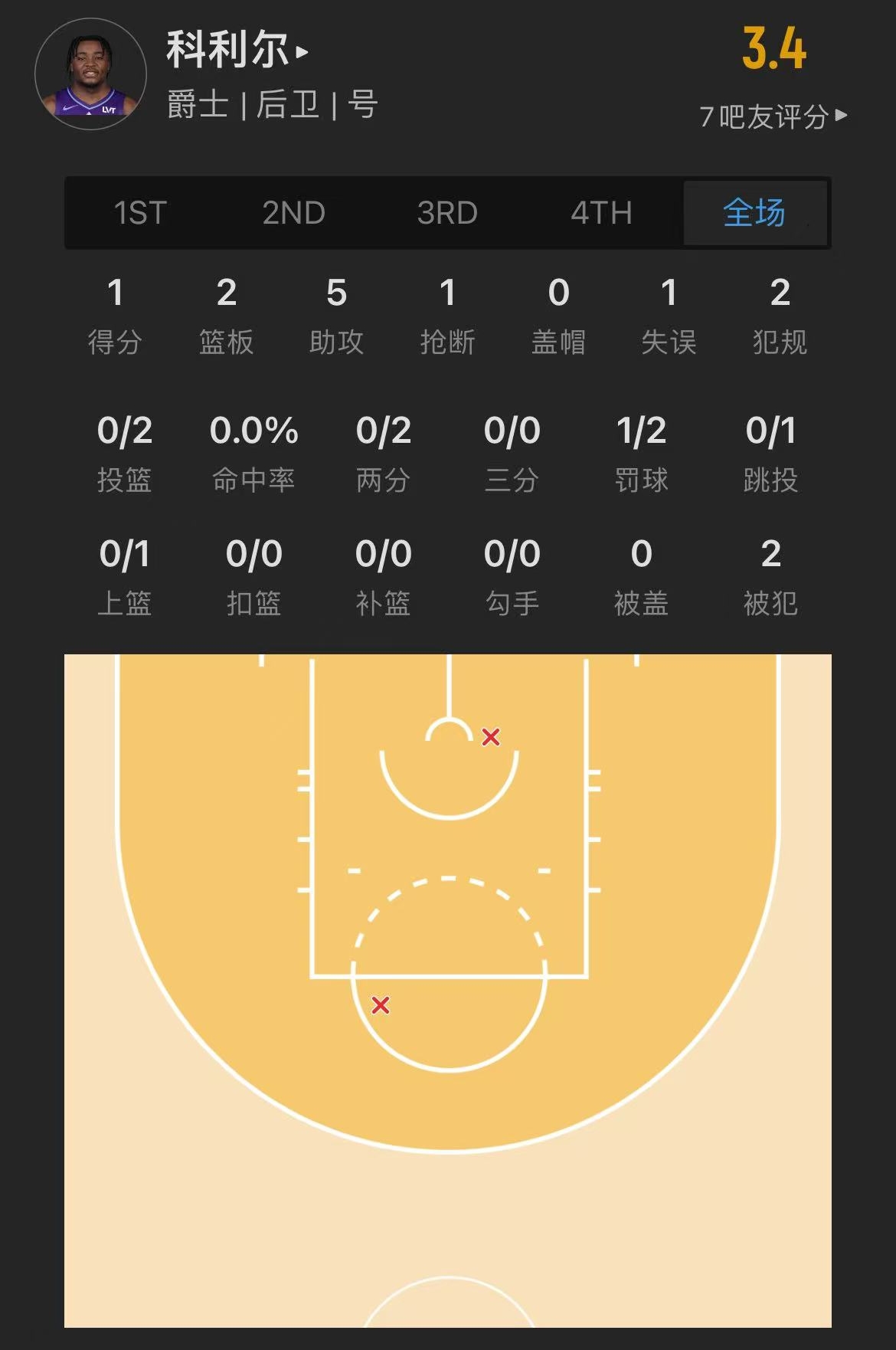 爵士29號(hào)秀 以賽亞-科利爾 登場(chǎng)16.7分鐘