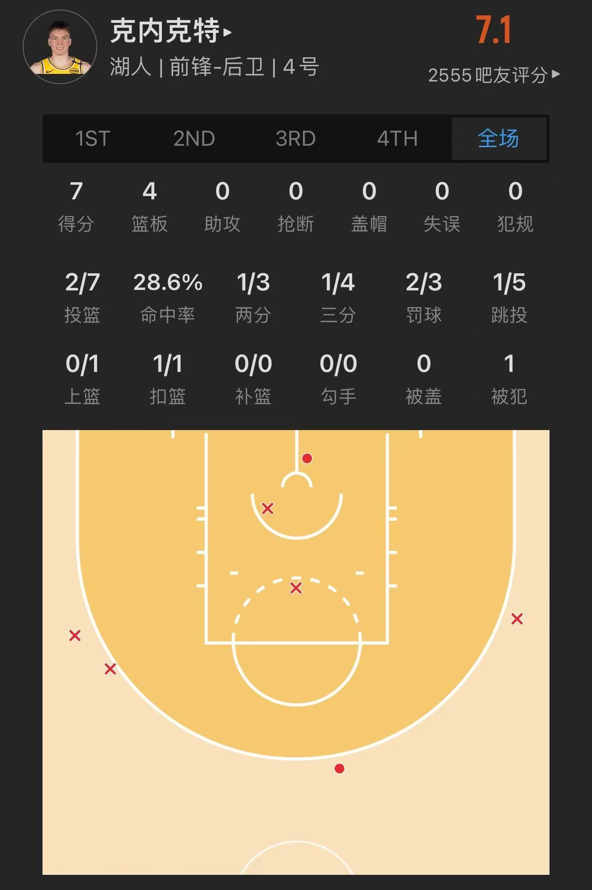 湖人17號(hào)秀 道爾頓-克內(nèi)克特 登場(chǎng)19.4分鐘