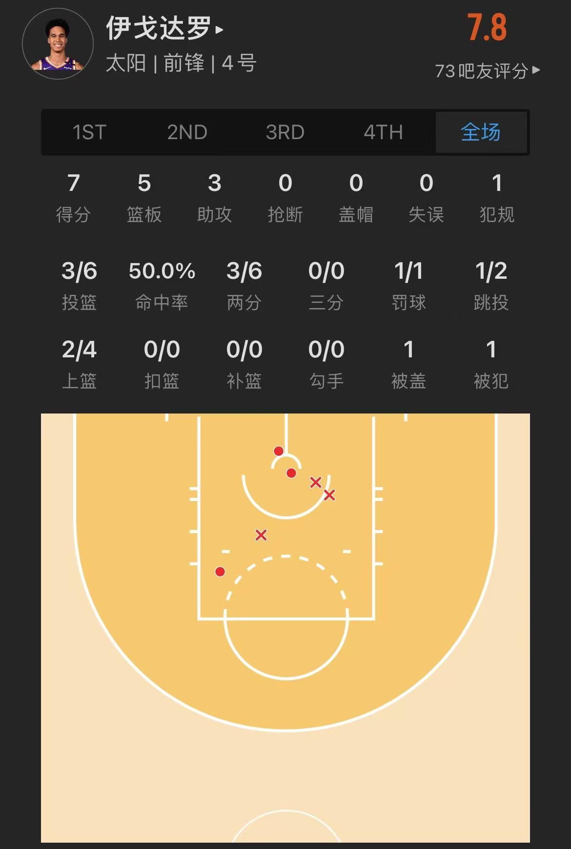太陽(yáng)40號(hào)秀 奧索-伊戈達(dá)羅 登場(chǎng)13.9分鐘