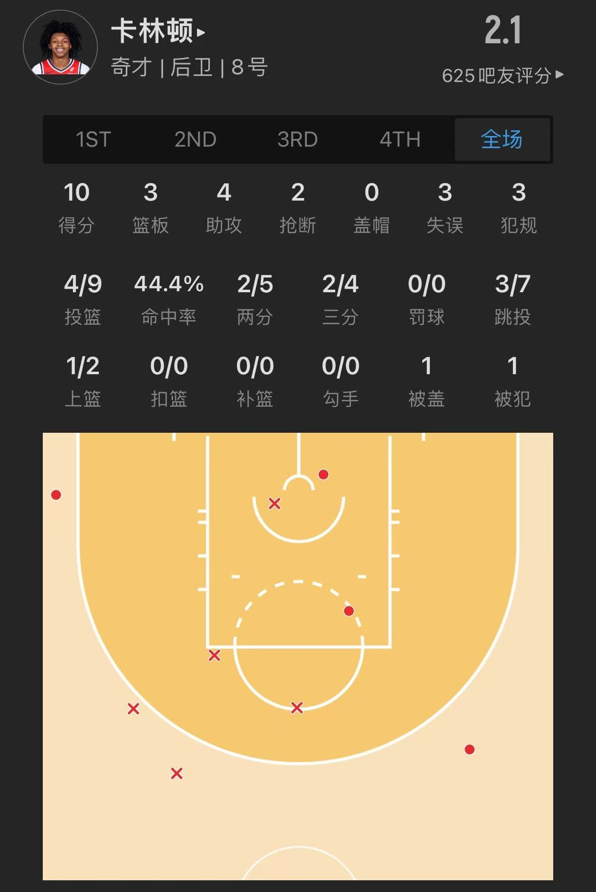 奇才14號(hào)秀 卡爾頓-卡林頓 登場(chǎng)25.1分鐘