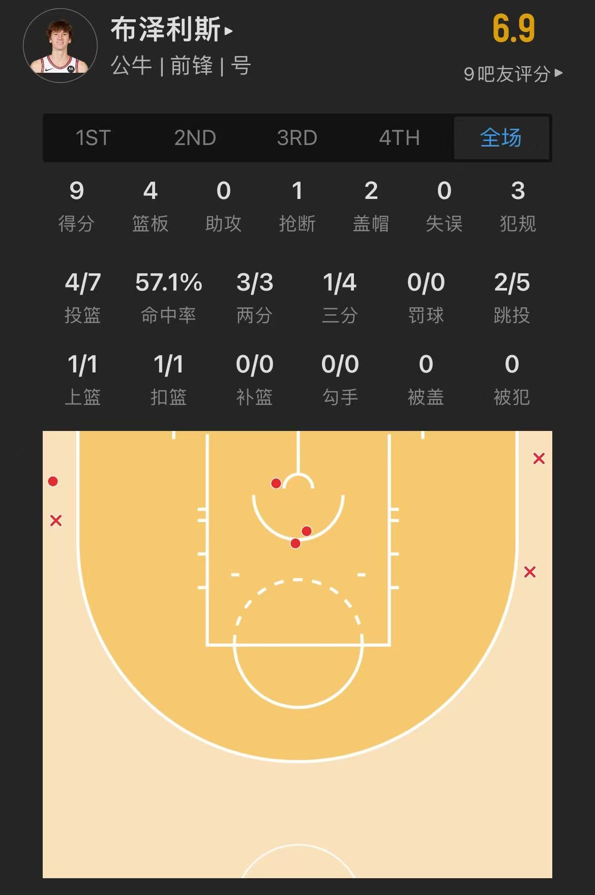 公牛11號(hào)秀 馬塔斯-布澤利斯 登場(chǎng)17.3分鐘