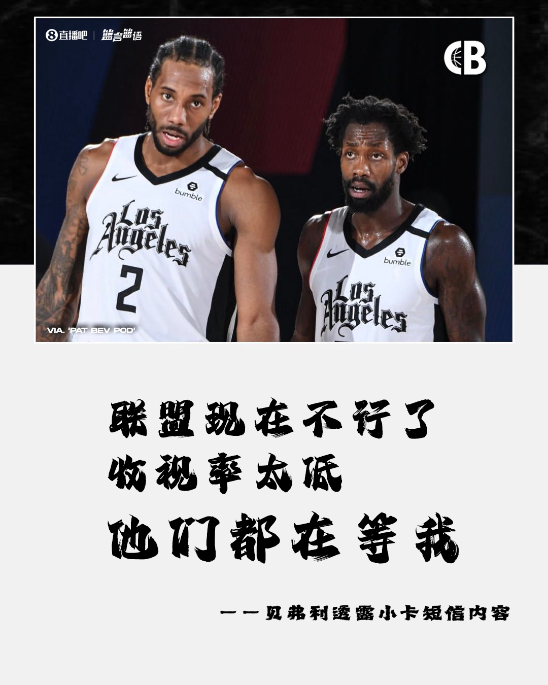 11月30日訊 前NBA球員貝弗利在自己播客中透露與快船球星小卡的聊天內(nèi)容。