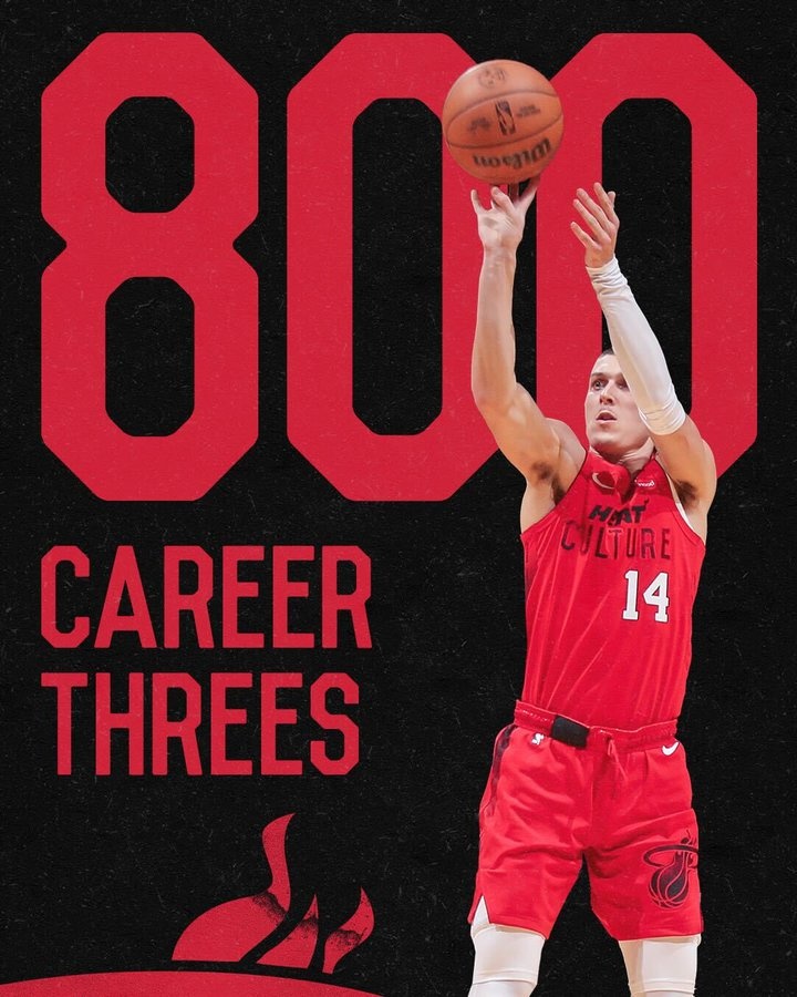 比賽進行到第三節(jié),希羅射進2個三分。熱火官推曬照祝賀:希羅命中了生涯第800個三分。