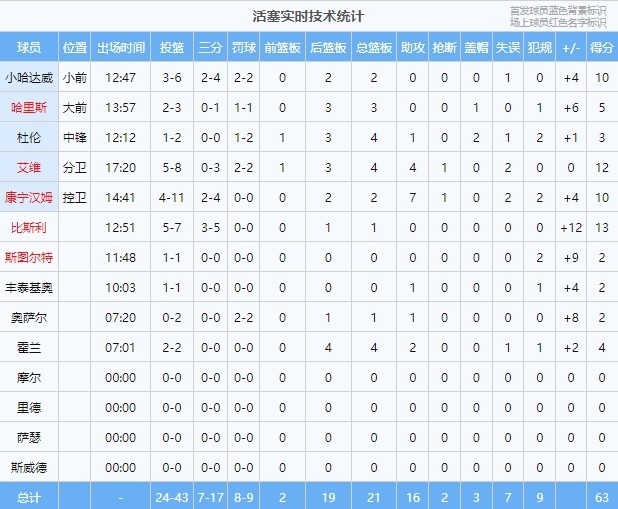 上半場(chǎng),活塞多點(diǎn)開(kāi)花,有4人得分上雙,比斯利13分半場(chǎng)最高,艾維拿到12分,小哈達(dá)威和康寧漢姆各有10分入賬。