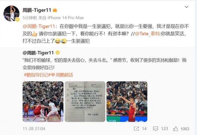 11月30日訊 此前,深圳主帥周鵬更博感謝收到了很多的支持和鼓勵(lì),會(huì)繼續(xù)做好自己。
