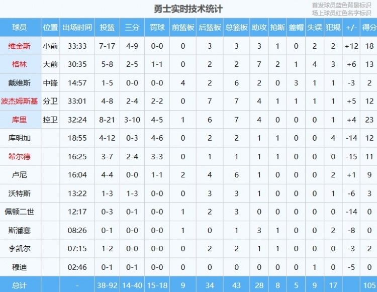 本場(chǎng)勇士名單上的13人全部獲得出場(chǎng)時(shí)間: