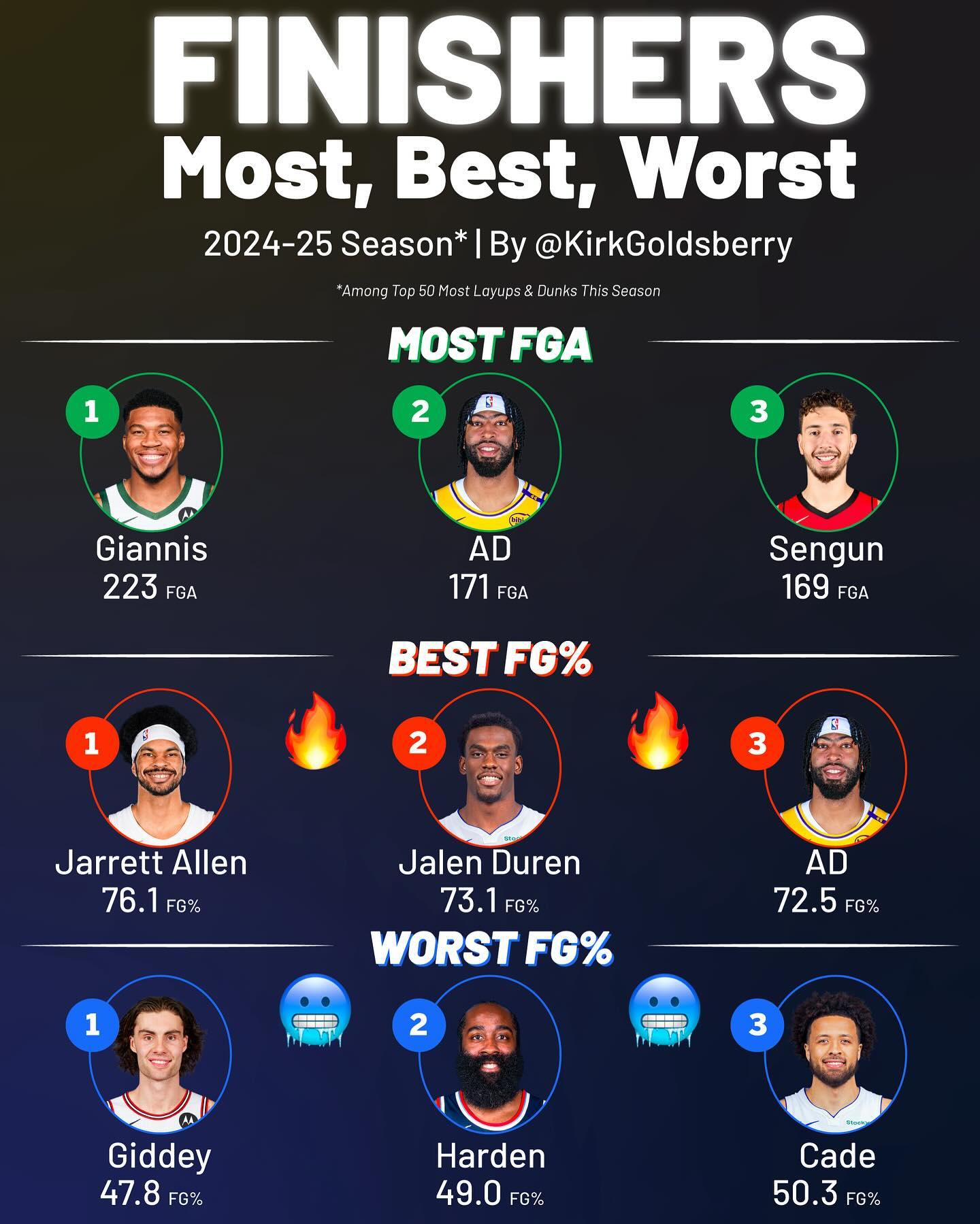 本賽季籃下終結(jié):字母哥出手?jǐn)鄼n第一哈登命中率聯(lián)盟倒二