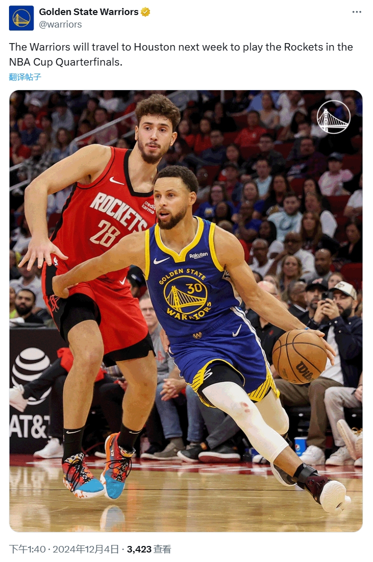 NBA杯西部第一組對陣已經(jīng)正式出爐:火箭(2)VS勇士(3)!