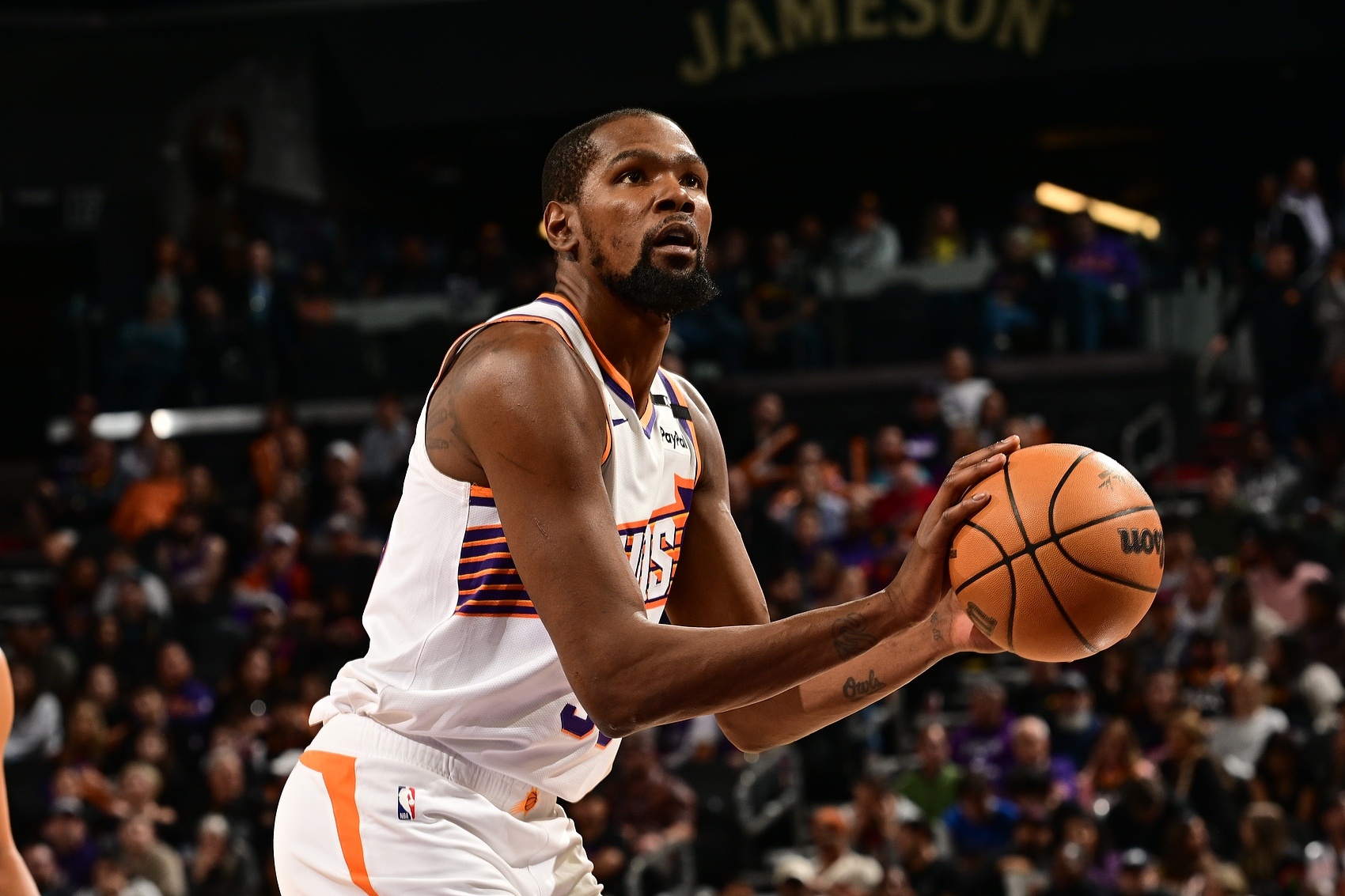 杜蘭特本場(chǎng)比賽下半場(chǎng)沒(méi)有首發(fā)。據(jù)后續(xù)跟進(jìn)報(bào)道,杜蘭特在更衣室治療腳踝,本場(chǎng)比賽不會(huì)回歸。