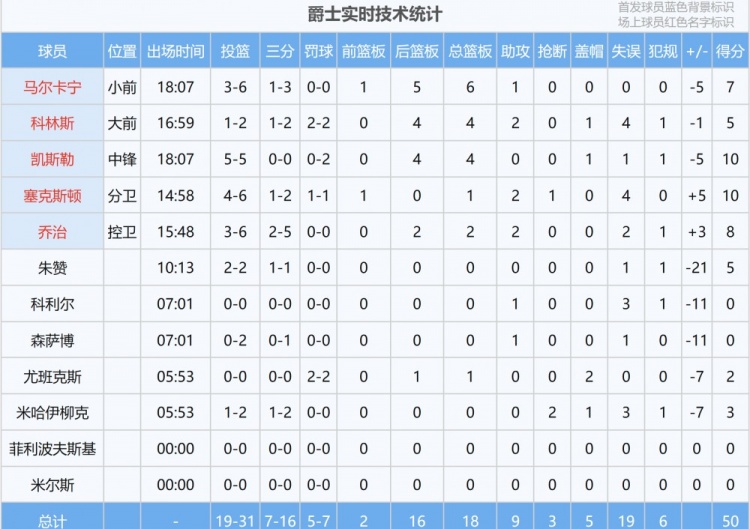 半場(chǎng)比賽,爵士全隊(duì)失誤頻頻,共出現(xiàn)19次失誤,反觀雷霆只有7次。