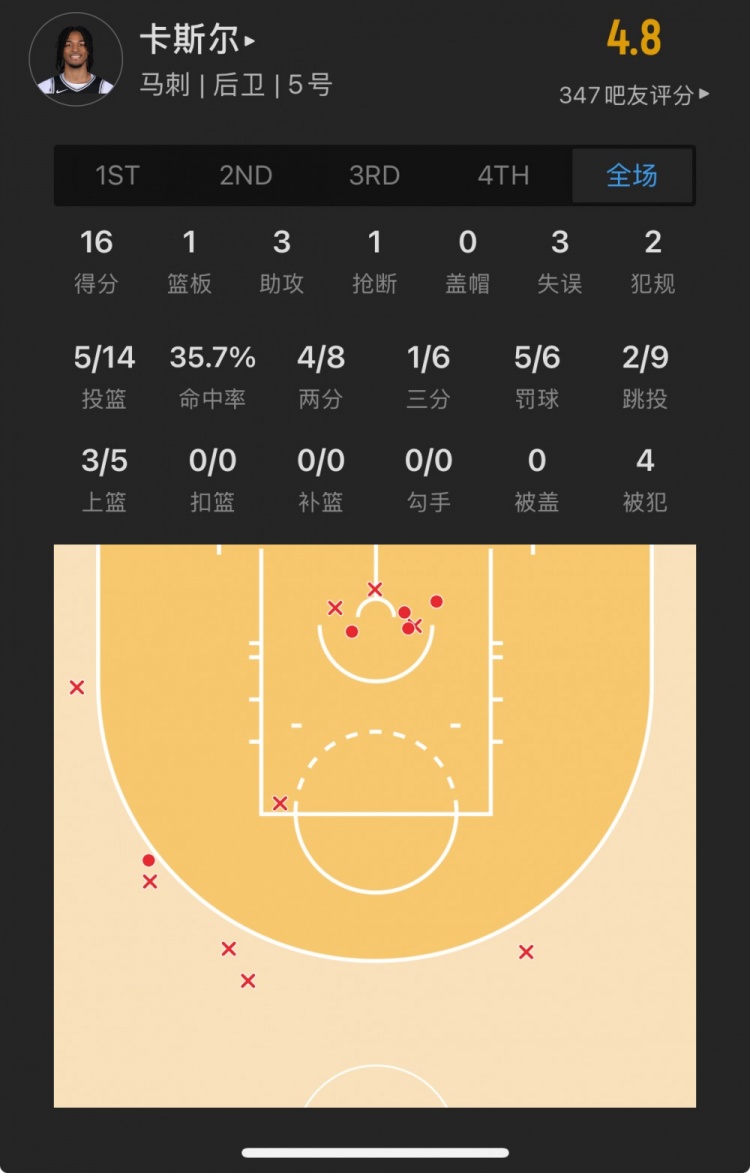 馬刺4號(hào)秀 斯蒂芬-卡斯?fàn)?登場(chǎng)34.4分鐘
