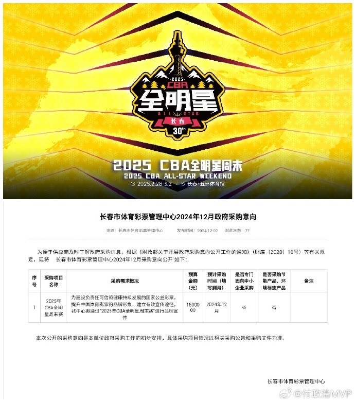 資深媒體人付政浩更博點評道:“先期給150萬元!在CBA第30屆全明星賽官宣花落長春后,長春市體育局也同步宣布給CBA全明星周末直接支持150萬元。當然這筆錢由長春體彩出。當前,各地發(fā)力文旅奇招頻出,體育活動成為文體旅融合的關(guān)鍵一環(huán)。去年黑龍江冰雪火了之后,今年吉林也蓄勢待發(fā),CBA全明星賽在長春舉辦,當?shù)馗鞑块T均應將給予應有的扶持力度。”