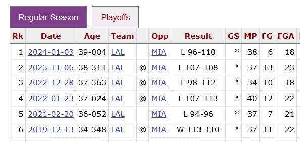 據(jù)統(tǒng)計(jì),在本場(chǎng)失利后,詹姆斯面對(duì)舊主熱火已經(jīng)遭遇了6連敗,上一次常規(guī)賽贏球還是在2019年12月13日(湖人113-110戰(zhàn)勝熱火)。