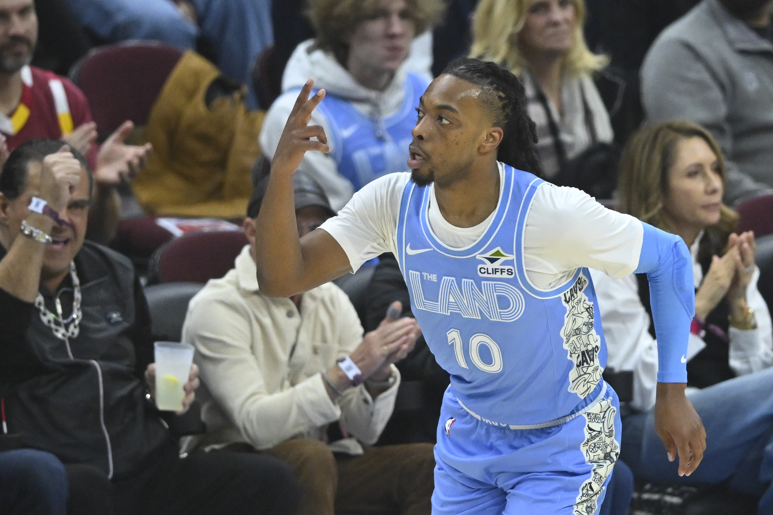 騎士擋拆突分轉移球三分掃射這一招壓著掘金打,米切爾持球擋拆就能吸引夾擊,阿倫/莫布里都能順下處理球,專打掘金弱側收縮,底角空位射手箭如雨下;一旦約老師夾擊慢一拍,米切爾、加蘭、梅里爾都在弧頂用單擋硬解三分給出了強勢回應。