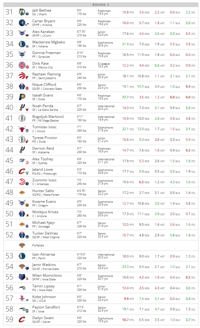 相關(guān)新聞:知名模擬選秀網(wǎng)站更新25年NBA模擬選秀排名 楊瀚森56位被勇士選中