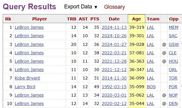 詹姆斯(39歲343天)繼續(xù)刷新了自己所保持的NBA歷史拿下30+三雙的最老紀(jì)錄!