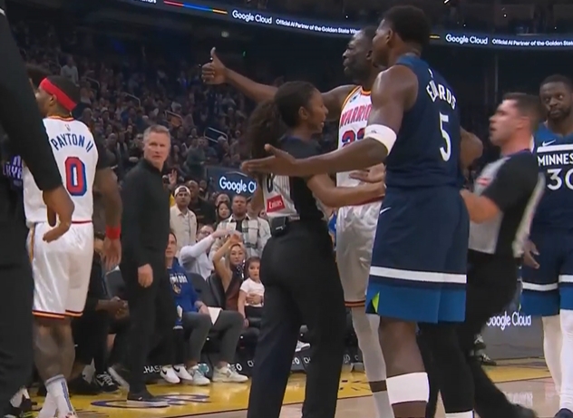 愛德華茲不滿裁判,推翻庫明加,愛德華茲吃到技犯