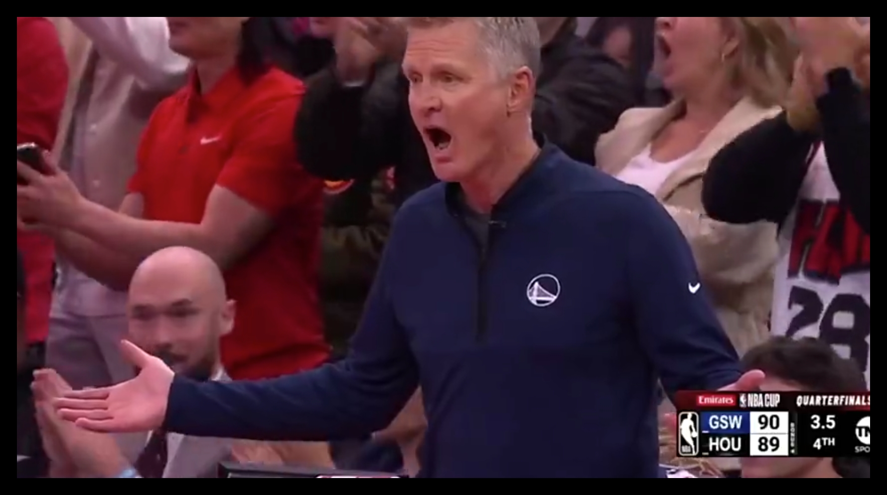12月12日訊 NBA杯1/4決賽,勇士在客場(chǎng)以90-91不敵火箭。比賽最后時(shí)刻,庫(kù)明加犯規(guī)杰倫-格林兩罰全中,準(zhǔn)絕殺勇士。