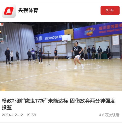 值得一提的是,央視體育也報(bào)道了楊政補(bǔ)測(cè)未達(dá)標(biāo)這一新聞。