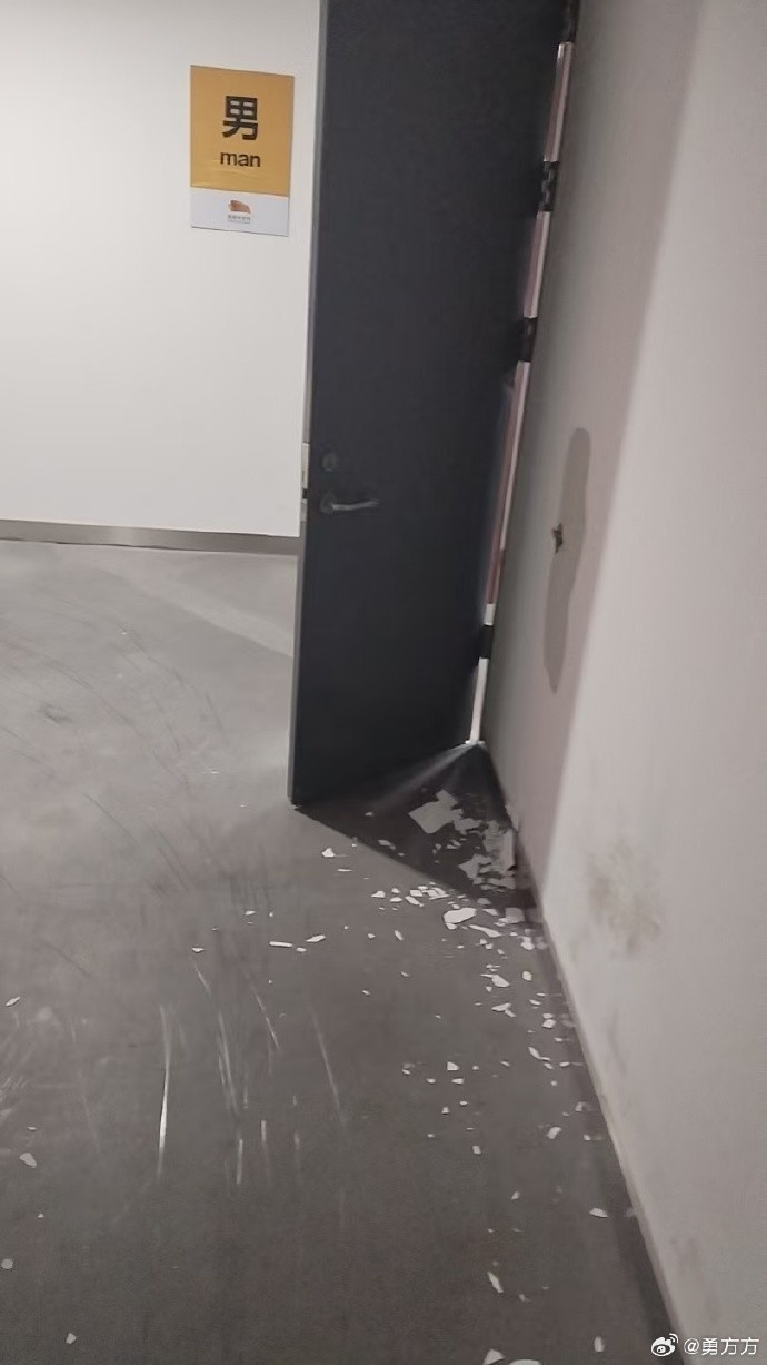 今日,北京媒體人勇方方更博:“賽后,國家體育館客隊(duì)休息室變成了這個(gè)樣子?!?/p>
