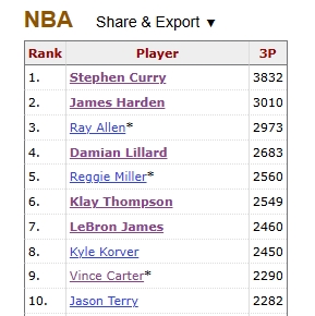 上半場比賽,76人球星保羅-喬治投進4記三分,生涯常規(guī)賽三分命中數(shù)來到2283記,超越杰森-特里(2282記)升至歷史第10,前面一位是文斯-卡特(2290記)。