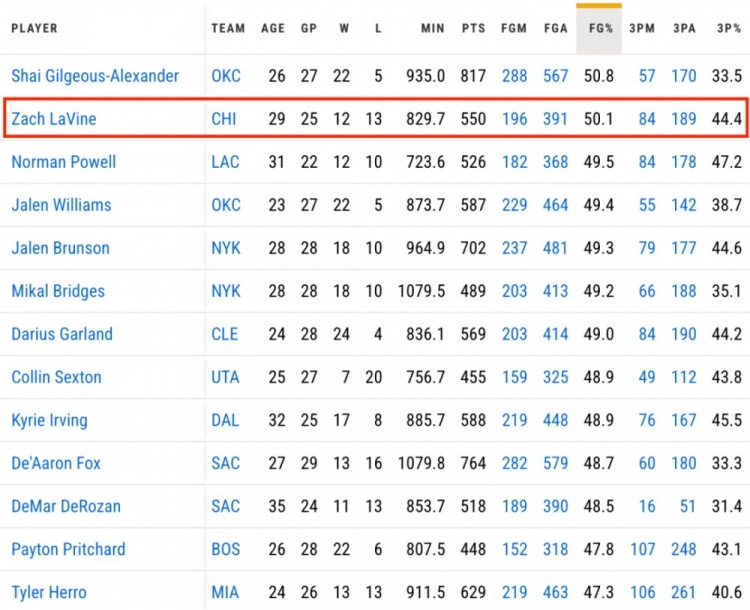 29歲的拉文雖然不再年輕,但他正打出著職業(yè)生涯最漂亮的得分效率,他整體運動戰(zhàn)的命中率高達(dá)50.1%,作為一名以遠(yuǎn)投為主的外線球員,這樣的效率屬實難能可貴——在全聯(lián)盟出手?jǐn)?shù)不少于300次的被歸類為后衛(wèi)的球員里,命中率第一的是50.8%的亞歷山大,而50.1%的拉文排在第二。