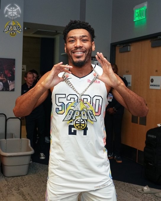 賽后,馬龍評選出了隊內(nèi)最佳防守球員,并將大金鏈子頒發(fā)給杰倫-皮克特。