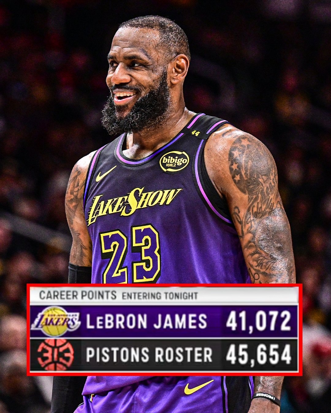 美媒曬出得分對比:詹姆斯41072分(賽前),僅比活塞現(xiàn)有球員名單總分(45654分)少4000多分。