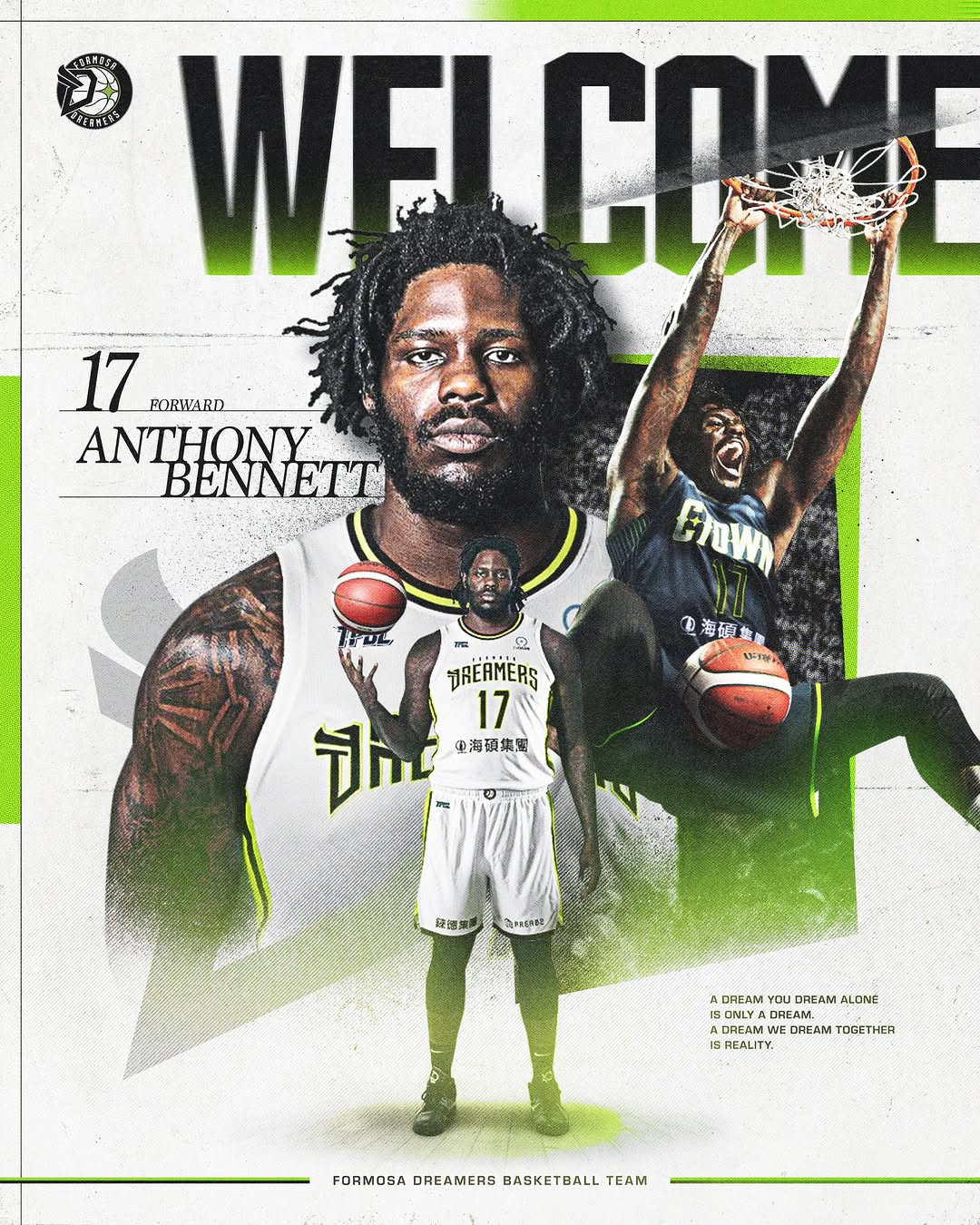 12月25日訊 中國臺灣籃球職業(yè)大聯(lián)盟(TPBL)球隊福爾摩沙夢想家官方宣布,前NBA狀元秀安東尼-本內(nèi)特正式加盟。